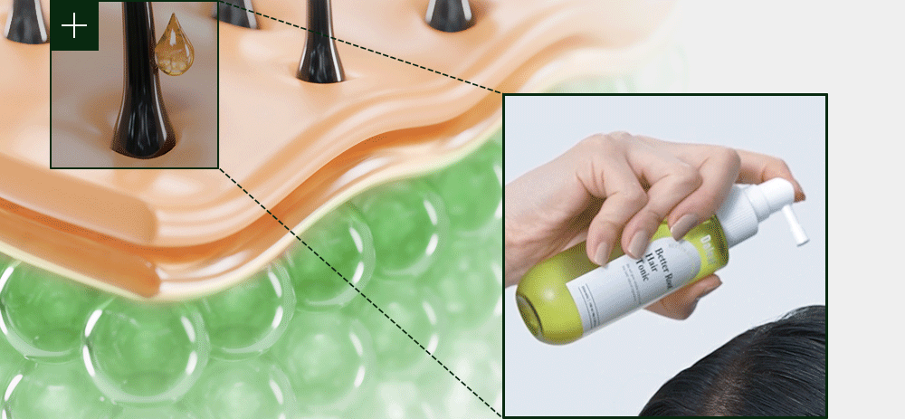 - ■ 제품을 흔들어주어 두피에 직접 분사 후 흡수가 되도록 손끝으로 마사지 해줍니다.