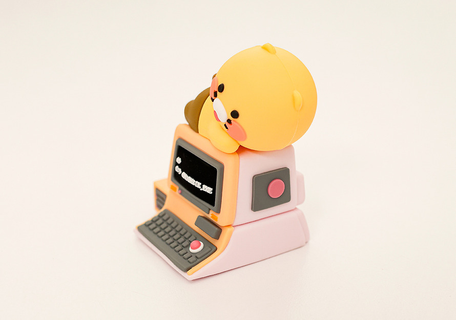 Next to the computer, a cute presence