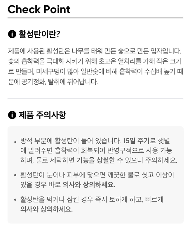 1. Do not wash with water. There is activated carbon inside, which can contaminate the product or lose its functionality when washed with water.
