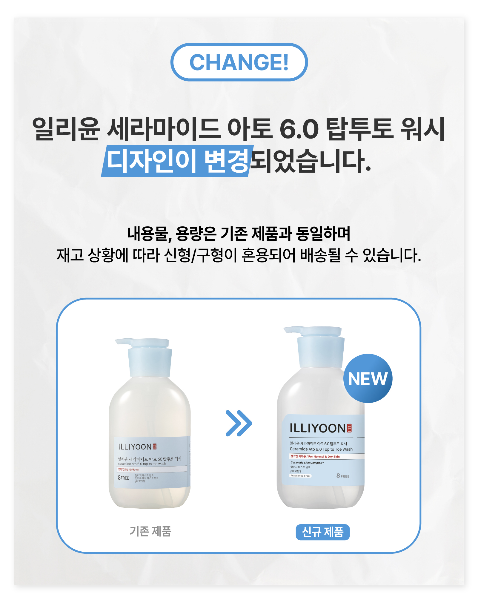 Product Information Provision Notice Table Dose or weight of the contents 500ml Main specifications For all skin types Usage date (or period of use after opening) 36 months before opening / 12 months after opening How to use Lather onto wet hands or shower towel, massage all over body, hair or scalp and rinse thoroughly. Cosmetics manufacturers, cosmetics responsible vendors and customized cosmetics vendors AMOREPACIFIC Co., Ltd. Manufacture Republic of Korea All ingredients that must be listed in accordance with the Cosmetics Act Water, Cocamidopropyl Betaine, Sorbitol, DAISO Dium Laureth Sulfosuccinate, Cocamide Methyl MA, Sodium Chloride, DAISO Dium Cocoampo Diacetate, Cocamide MA, 1,2-Hexanediol, Sodium Benzoate (0.5%), Citric Acid, DAISO Dium EDTA, Butylene Glycol, Ginseng Water, Shiho Root Extract, Dwarf Dwarf Root Extract, Leafy Pulse Root Extract, Perilla Seed Extract, Natto Gum, Ceramide NP (10 ppb), Ethylhexylglycerin, Stearic Acid, Hydroxypropyl Bispalmitamide MA (Ceramide PC-104 3 ppb), Mannitol, Acrylate/Ammonium Methacrylate Copolymer, Silica, Cholesterol Functional cosmetics food and medicine safety department examination Not applicable Precautions when using 1. If it gets into your eyes, rinse it off immediately. 2. If used on hair, be careful not to rinse it off with water after use, as this may cause hair loss or bleaching. 3. If you have any abnormal symptoms or side effects such as red spots, swelling, or RYO swelling in the area of use due to direct sunlight when using cosmetics or after use, consult a specialist. 4. Refrain from using it on wounded areas. 5. Precautions for storage and handling 1) Keep out of reach of children. 2) Store away from direct sunlight. Quality Assurance Standards If there is a problem with this product, we will compensate you according to the Fair Trade Commission’s notification. Head Office Customer Service Center (toll-free) 080-023-5454 Consumer Counseling Phone Number 080-030-5454 (Toll free) Operating hours : 09:00 ~ 17:00 (Excluding lunch time, 12~13 o’clock) (Excluding weekends and holidays)