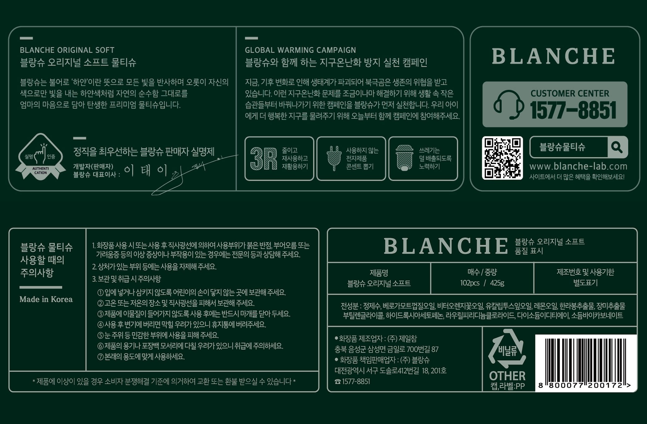 Blanche original soft baby wipes cap type