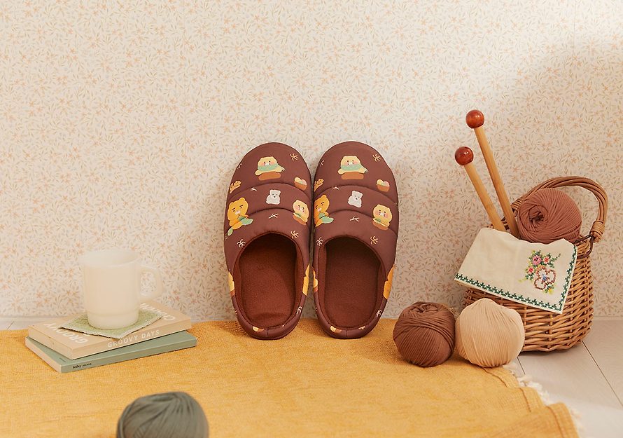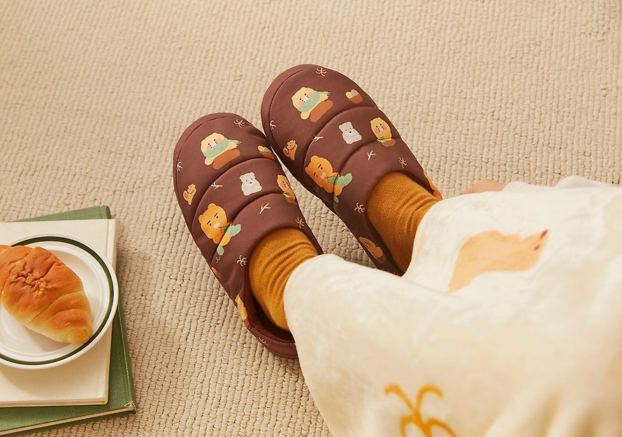 With padded slippers that wrap your feet warmly, cold hands and feet are no 😉 problemRachun and his forest animal friends are all over 🐻 the place.Shh- I told them not to slip, and I also attached a non-slip pad.Warm cabin of Rachun and his forest animal friends in the forest 🌳