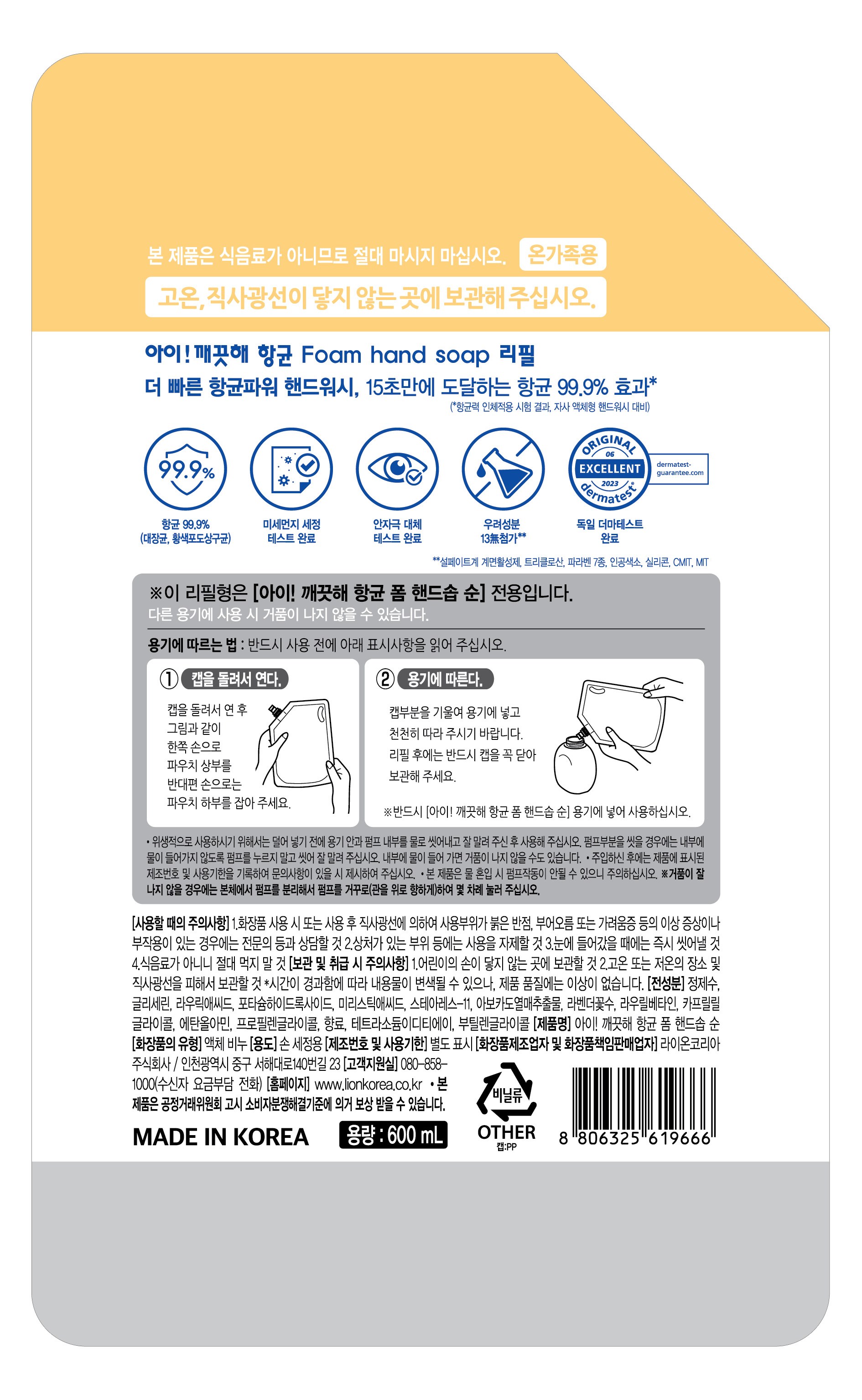 Child Clean Antibacterial Foam Hand Soap Pure Powder Flavored Refill, 600ml, 1 piece