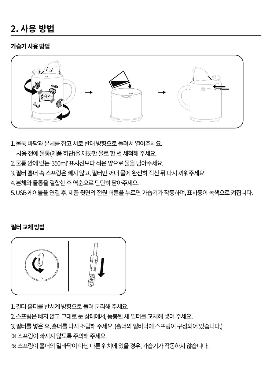 ※ Please refer to the product manual at the bottom and enclosed for how to use and replace the filter.