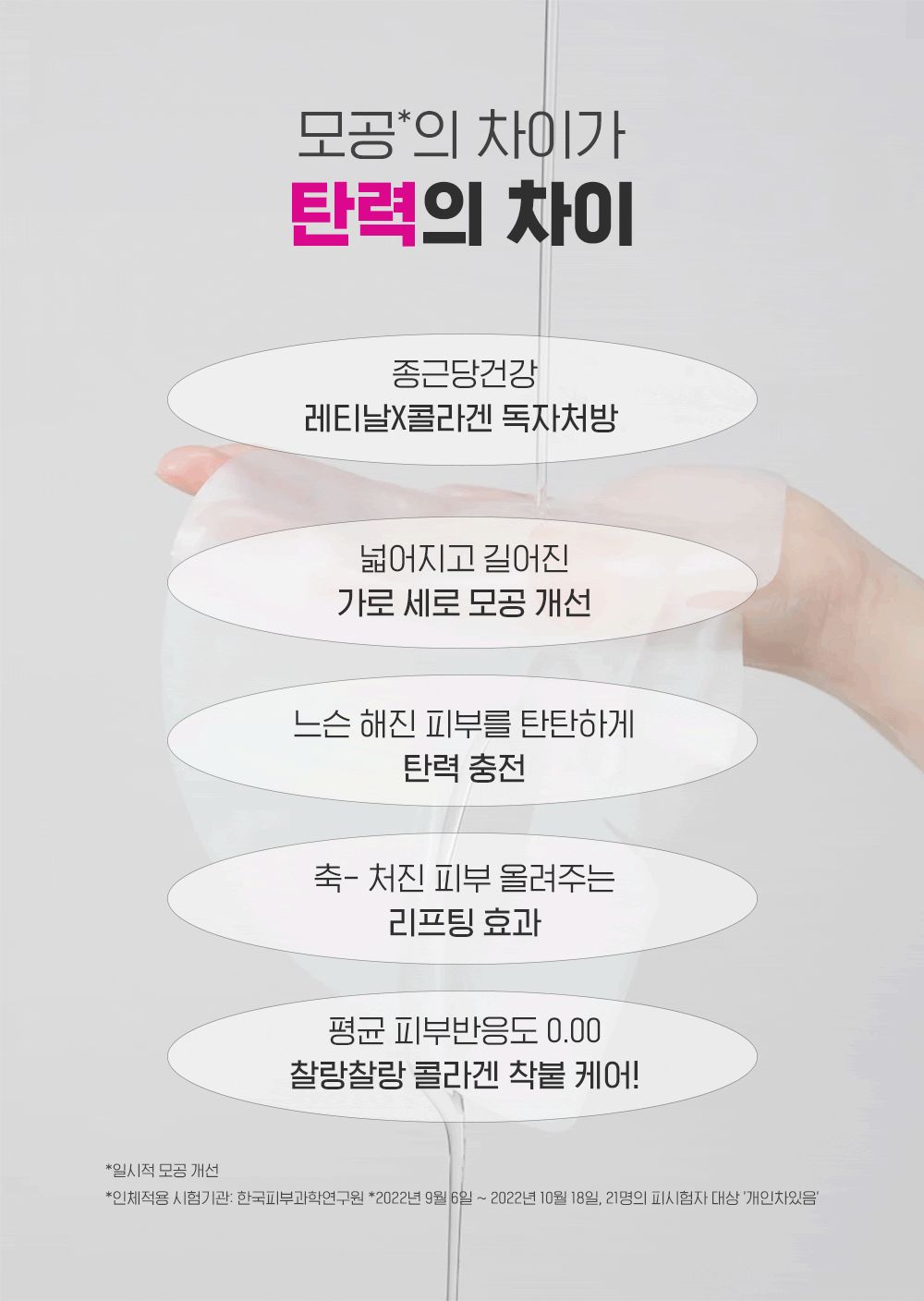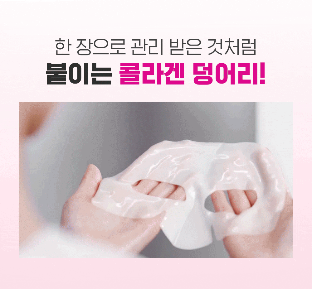 Product Information Provision Notice Table Dose or weight of the contents 5매 + 2매 (1 serving/31g) Main specifications All skin types Usage date (or period of use after opening) 36 months from the date of manufacture / Within 12 months after opening How to use (1) After cleansing, adjust the skin texture with toner, then take out the mask separated from the top and bottom to remove the film. (2) Stick the top with the eyes as the center and the bottom with the mouth as the center, according to the face. (3) Depending on the skin condition, the active ingredients are absorbed and become transparent from about 30 minutes. *Depending on your skin condition, it may take more than 40 minutes. (4) When the mask becomes transparent, remove it and tap the remaining contents with your handsRYO to absorb it. Cosmetics manufacturers, cosmetics responsible vendors and customized cosmetics vendors Cosmetics manufacturer Lee Mi-in 40-37 Seobuk-ro, Gajang Industry, Osan-si, Gyeonggi-do / Cosmetics responsible seller Jong Keundang Health Co., Ltd. 170, Hapdeok-eup, Hapdeok-eup, Dangjin-si, Chungcheongnam-do Manufacture Republic of Korea All ingredients that must be listed in accordance with the Cosmetics Act Water, Glycerin, Dipropylene Glycol, Cetylethylhexanoate, Niacinamide, 1, 2-Hexanediol, Carob Gum, Irish Moss Powder, Irish Moss Extract, Panthenol, PEG-100 Stearate, Glyceryl Stearate, Cellulose Gum, Shea Butter, Collagen (1,748 ppm), Potassium Chloride, Sodium Polyacrylate, Polysorbate 60, Hydroxyacetophenone, Hydrogenated Polydeceene, Sucrose, Algin, Caprylyl Glycol, Butylene Glycol, Adenosine, Bergamot Oil, Gardenia Extract, Sodium Hyaluronate, Trideceth-6, Dextrin, Pantoractone, Hydrolyzed Elastin, Dipotassium Glycyrrhizate, Retinal (500 ppb), DAISO Ldd, Limonene Functional cosmetics food and medicine safety department examination Functional cosmetics examination (or report) in accordance with the Cosmetics Act Precautions when using 1) When using cosmetics or after using them, consult a specialist if you have any abnormal symptoms or side effects such as red spots, swelling, or BRAND 1 syndrome in the area of use due to direct sunlight 2) Refrain from using it on areas with wounds 3) Precautions for storage and handling A) Keep out of reach of children B) Keep out of direct sunlight 4) Avoid eye area Quality Assurance Standards If there is a defect in this product, we will compensate you according to the ‘Consumer Dispute Resolution Standards’ announced by the Fair Trade Commission. Consumer Counseling Phone Number 1855-3308