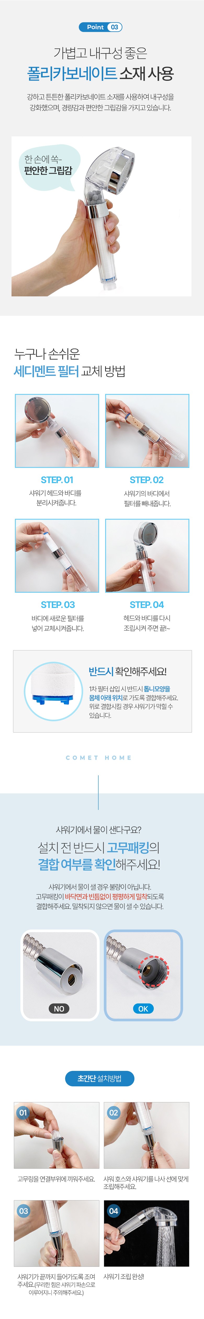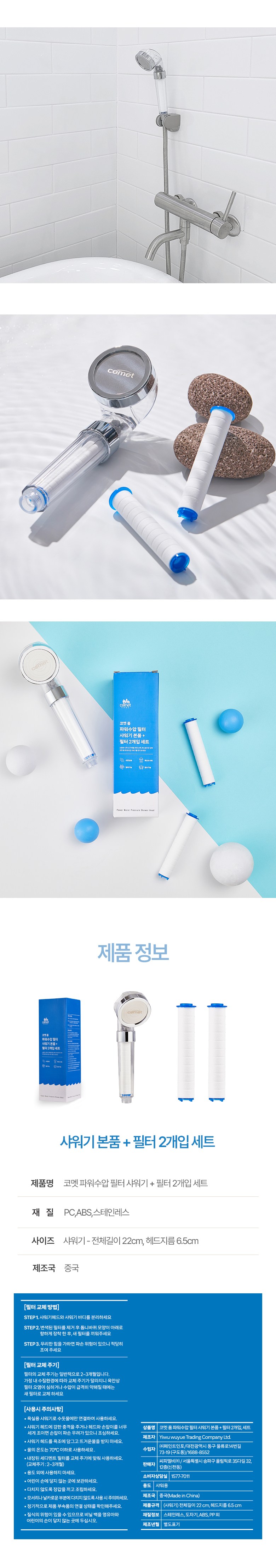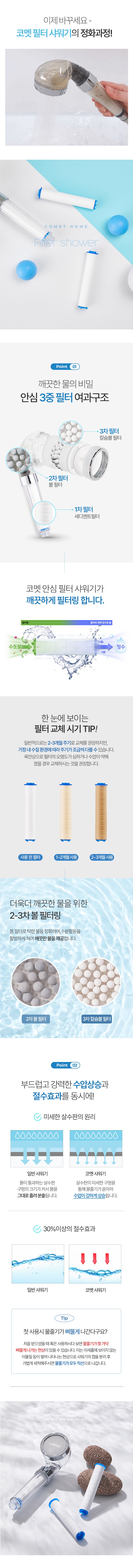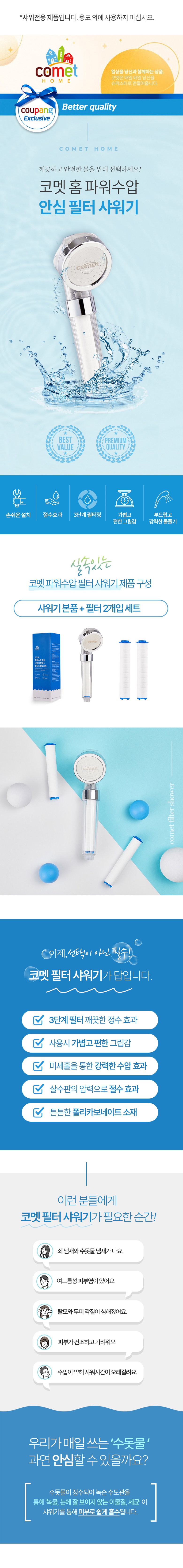 Comet Home Power Hydro Filter Shower + Filter 2개입, 1 Piece, Silver