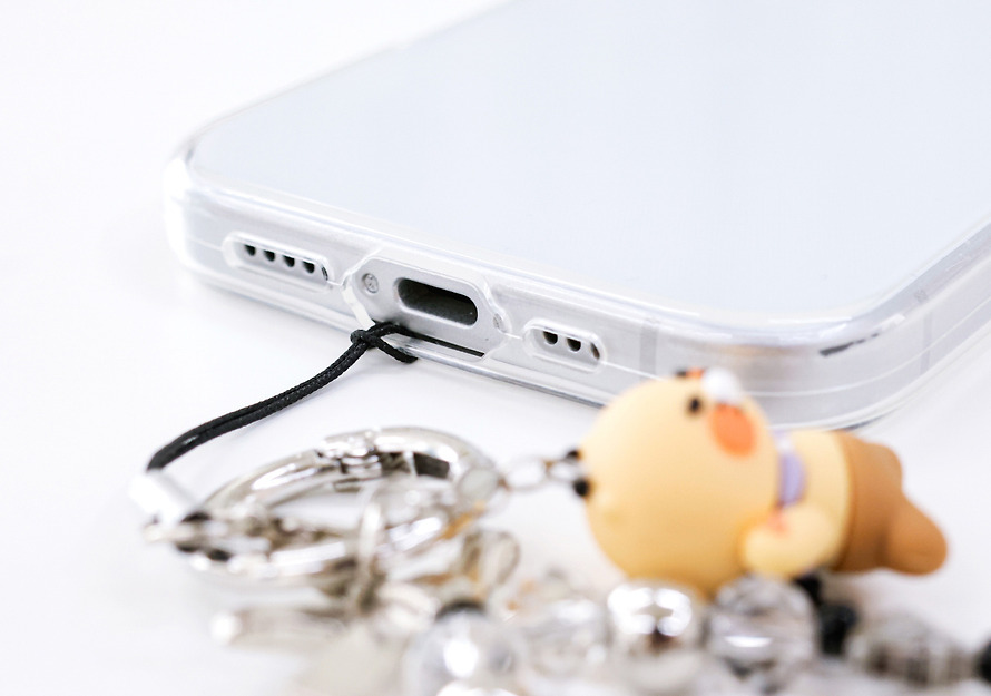 The figure bead strap can be worn in various places such as the camera hole, charging port, speaker hole, etc.