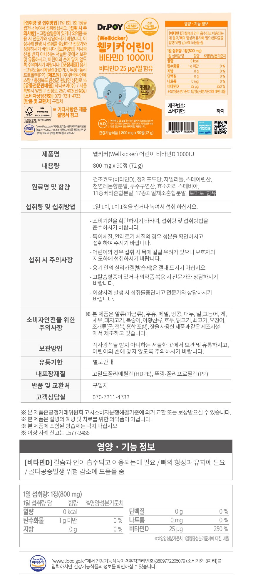 Dr. Foy Well Kicker Children Vitamin D 1000IU 72g, 90 tablets, 1