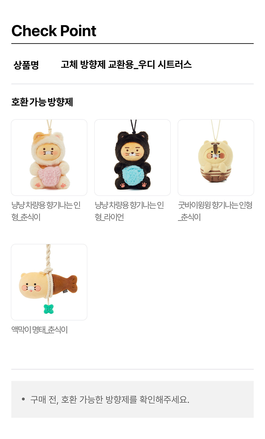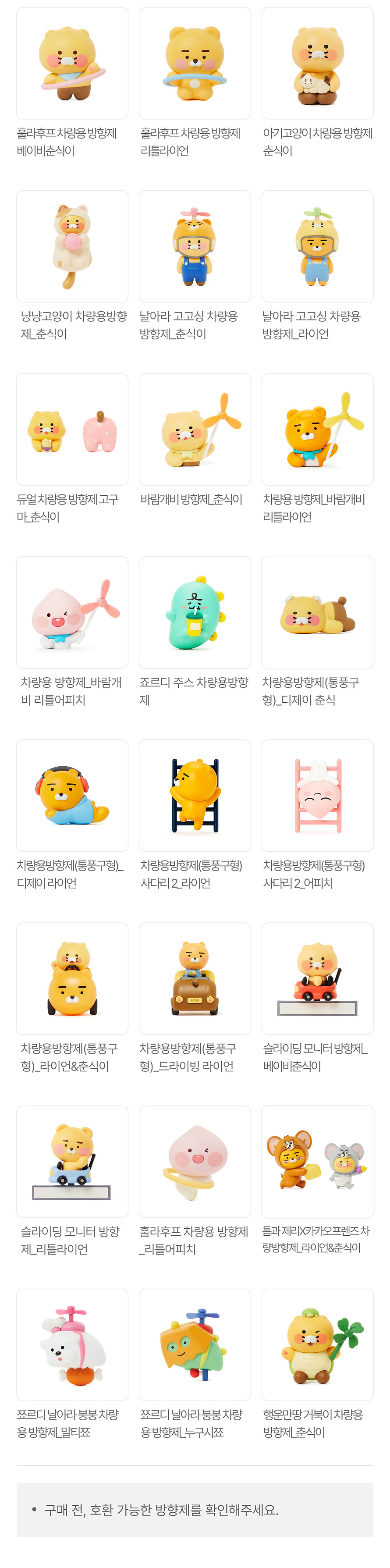 * This product is compatible with all previously released Kakao Friends air fresheners for vents and dolls with built-in solid air fresheners.