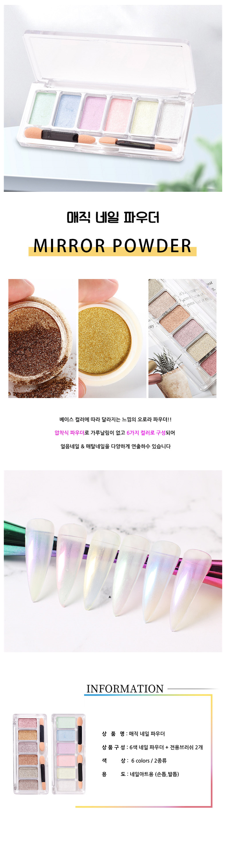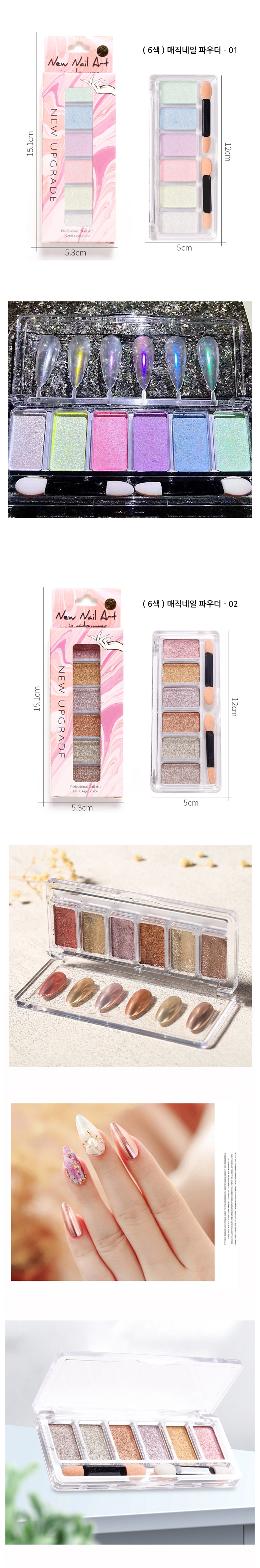 Magic Nail Powder 01 6 types + brush, 1 piece, mixed colors