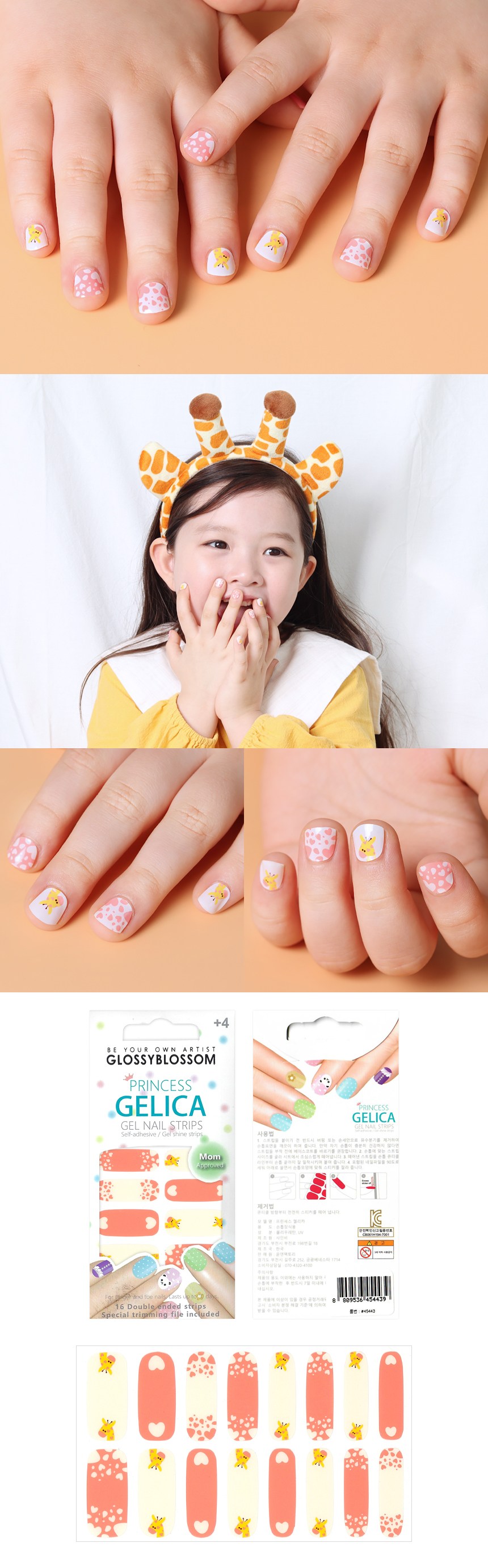 Glossy Blossom Princess Jelica Kids Gel Nail Strips, Oh My Giraffe, 1 Piece