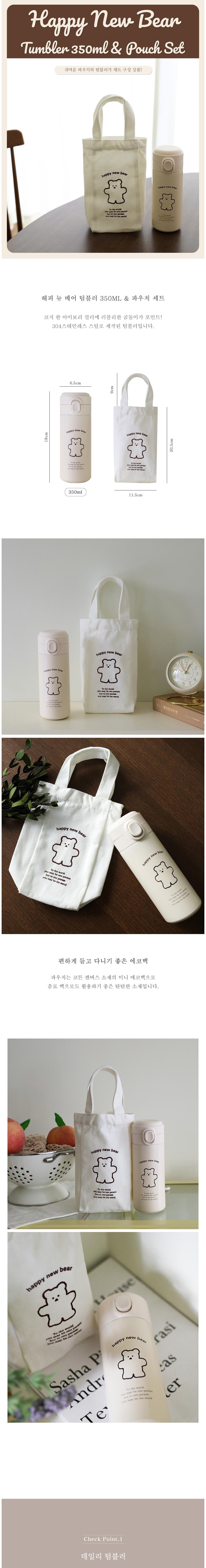 Happy New Bear Tumbler + Pouch, ivory, 350ml, 1 set
