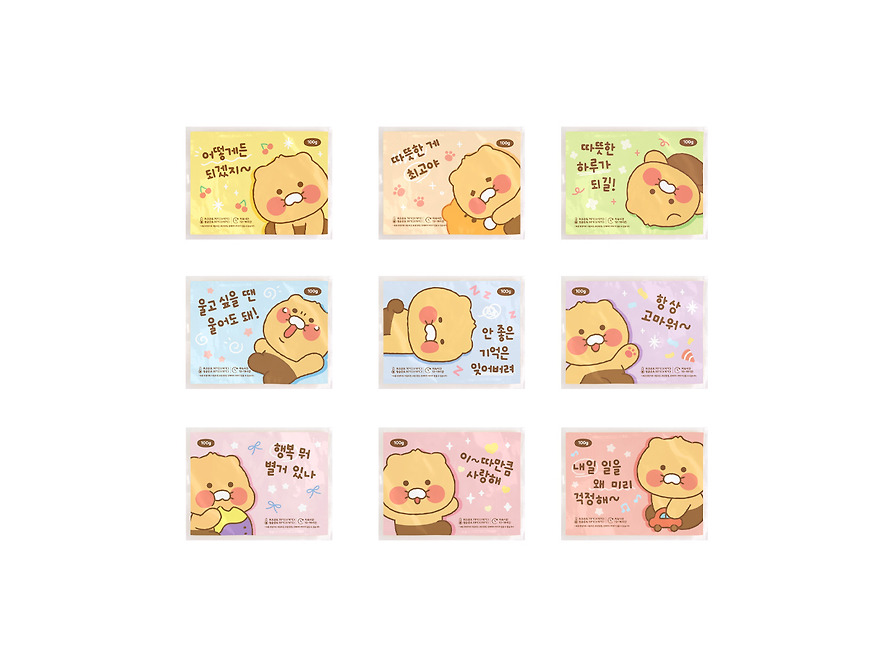 There are a total of 9 types of cute cheering phrases and 10 designs, which are randomly composed.