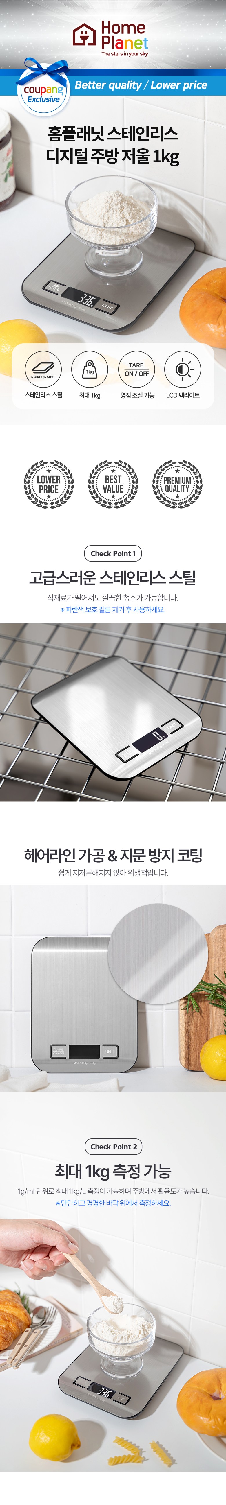 HomePlanet Stainless Steel Digital Backlighting Kitchen Scale 1kg
