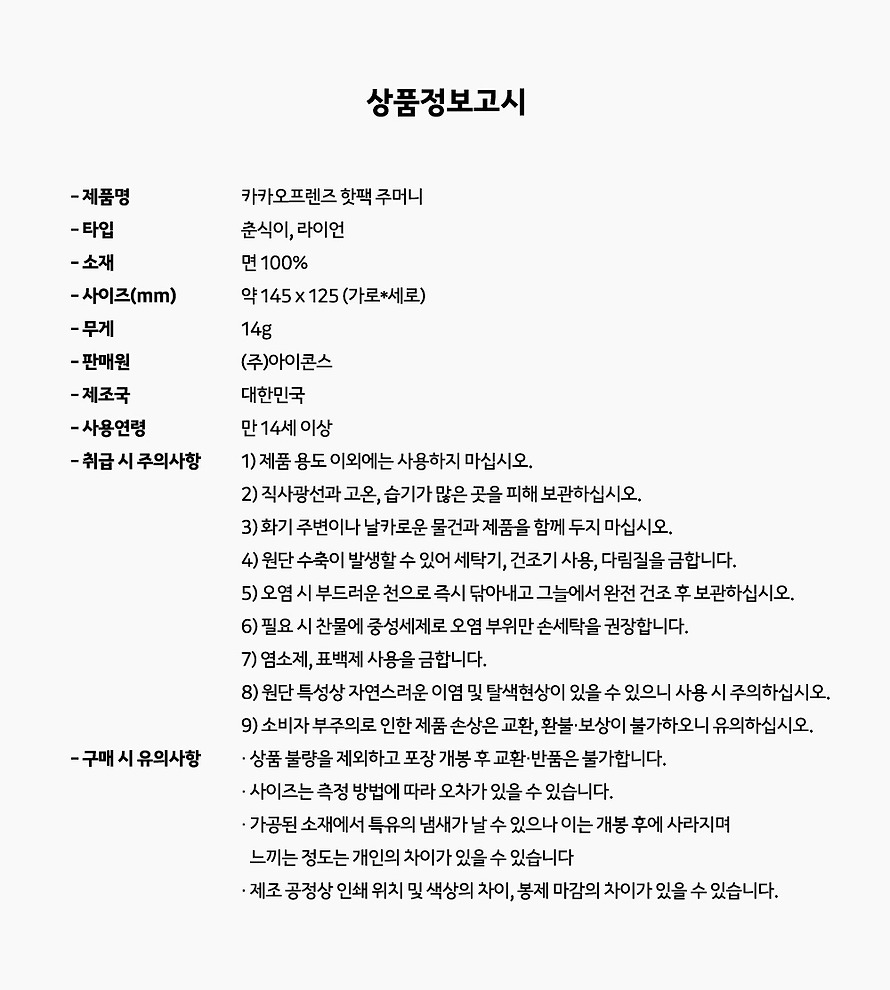 It has an open wide entrance and can store up to 2 hot packs of 80g~180g sizes, making it practical.