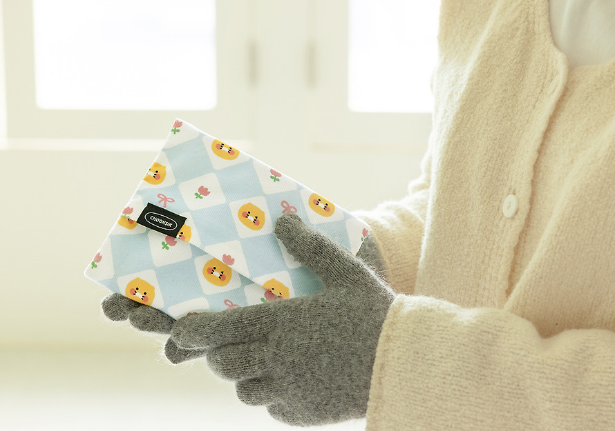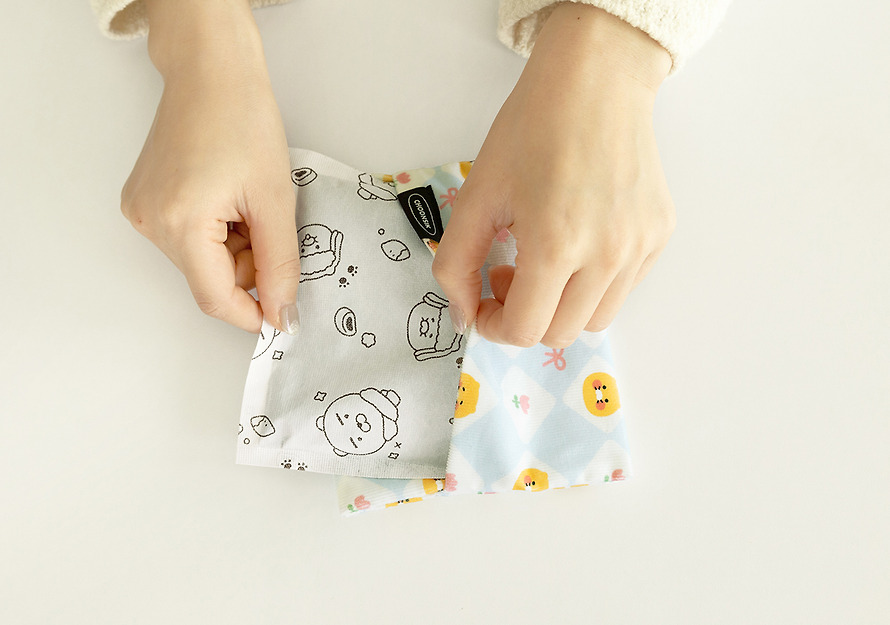 The hot pack pocket, which fits in one hand, is made with a two-layer structure of corduroy outer fabric and cotton lining, boasting a soft touch and stable heat retention.