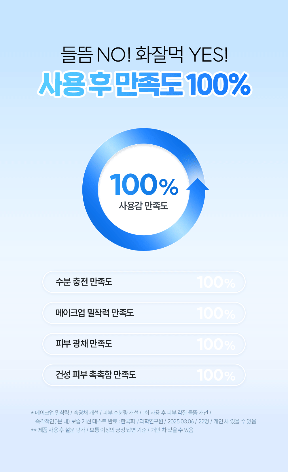 TIP. 바쁜 아침에는 적당량을 1회, 피부 휴식기인 저녁에는 적당량을 2회 정도 레이어링하여 사용하는 것을 추천 드립니다.