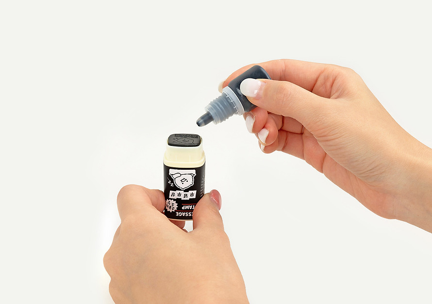 1️⃣ Apply 1~2 drops of stamp-specific Refill ink to the rubber pad and scrub evenly.