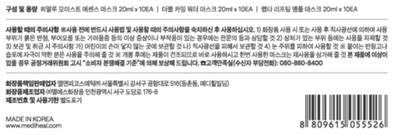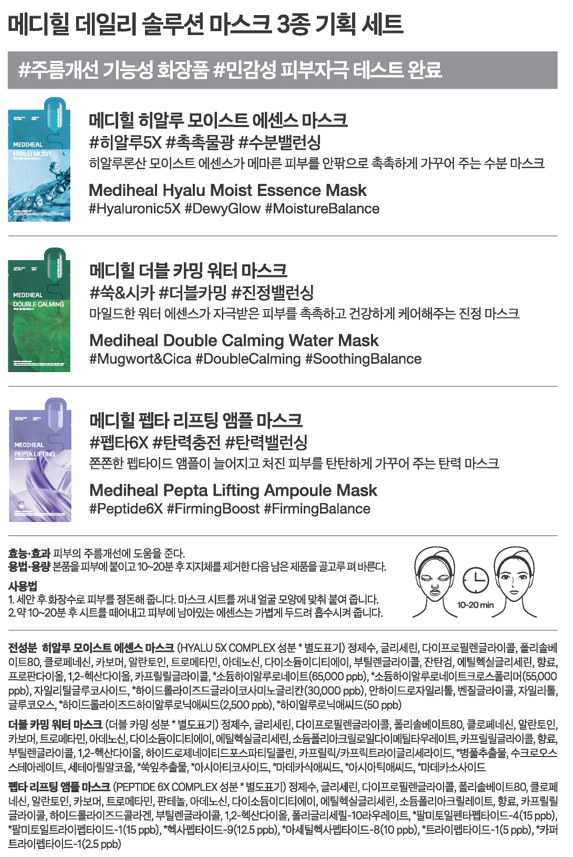 Mediheal Double Calming Water Mask + Hyalu Moist Essence Mask + Pepta Lifting Ampoule Mask