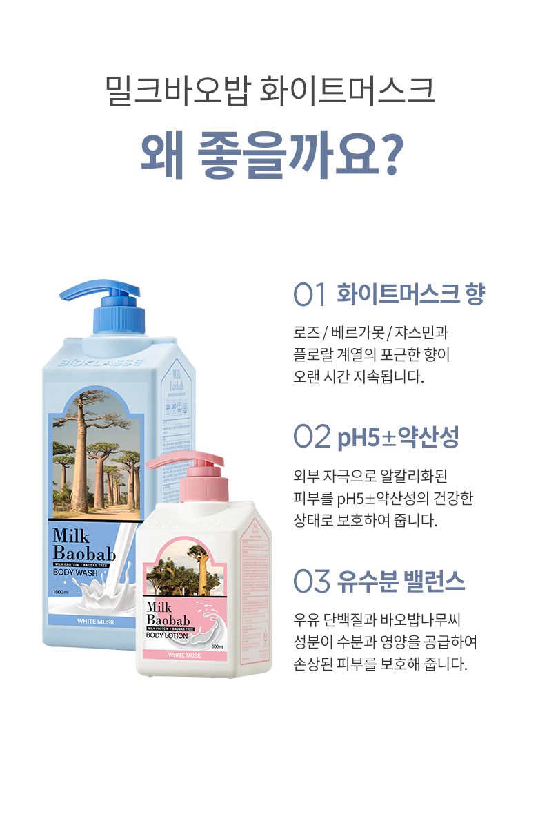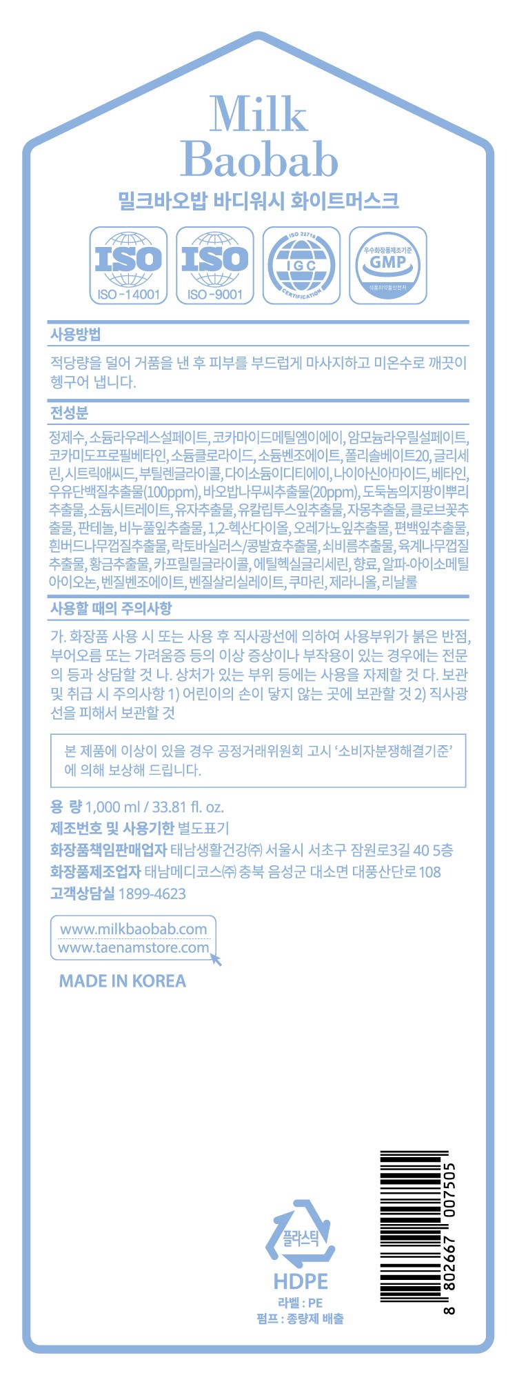 Milk Baobab Body Wash White Musk Flavor, 1L, 1 Count