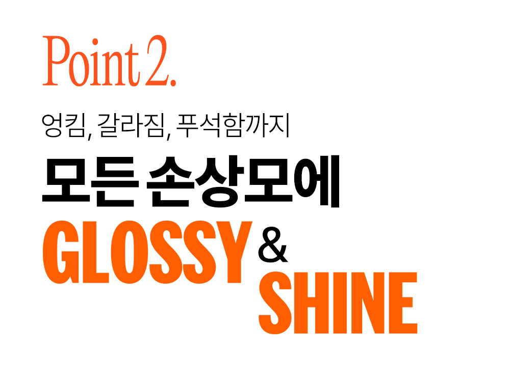 - 타올 드라이 후, 젖은 상태의 모발 전체에 동전 크기의 내용물을 골고루 바른 후 드라이합니다. 드라이 후 마무리로 모발 끝에 발라주면 더욱 좋습니다.