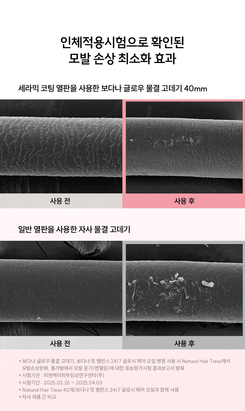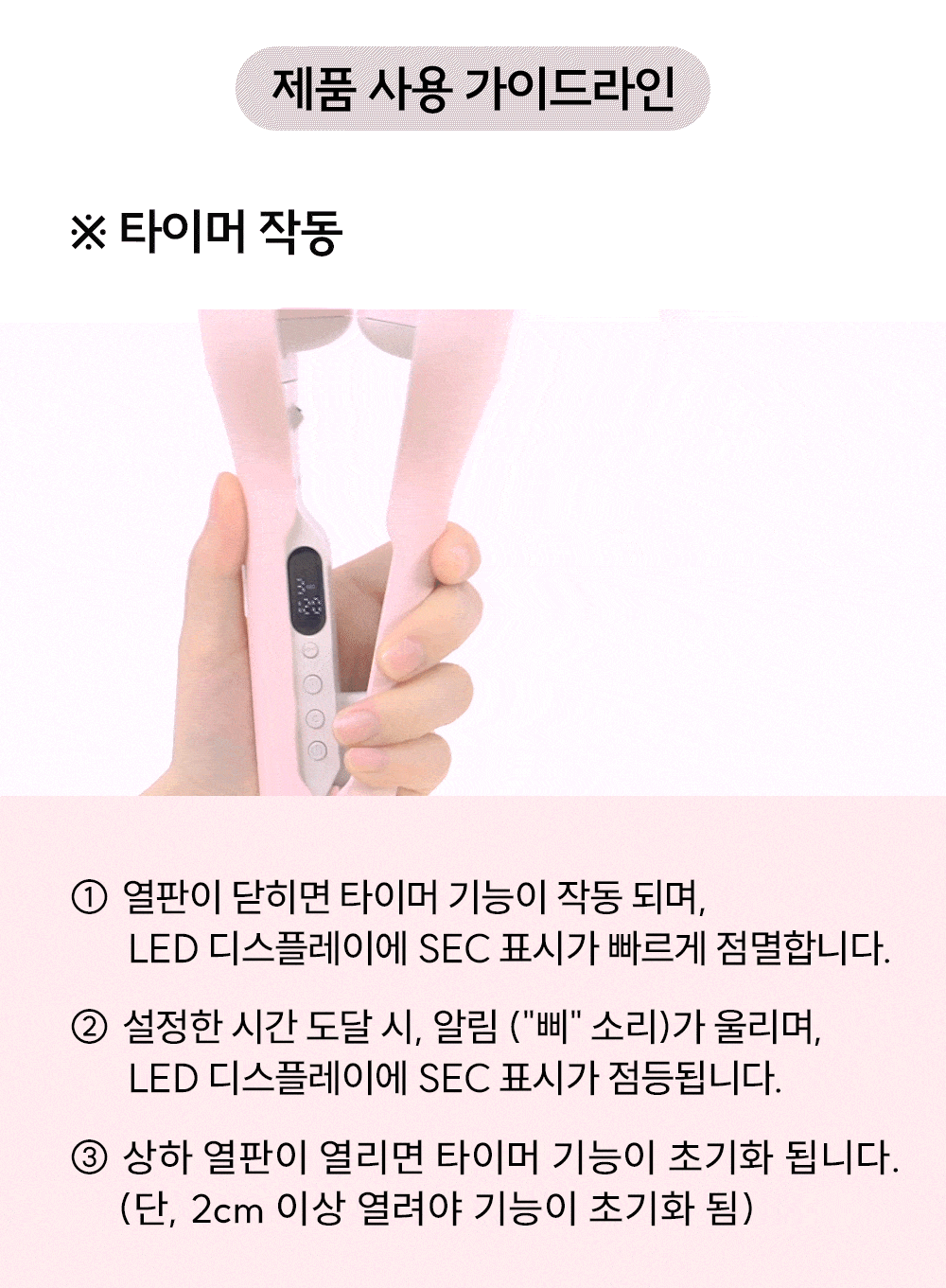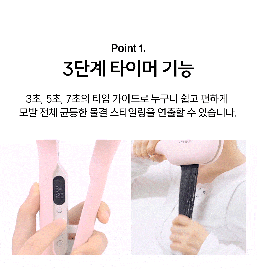 Product name and model name Vodana Glow wavy curling iron 40mm powder pink (wavy perm) Rated voltage, power consumption 100-240 V ~, 50-60 Hz, 75W Same model release year 2025.04 Manufacturer Dongguan BidiscoElectr ic Co . Ltd / Salesperson : Vodana Co., Ltd. Manufacture China (OEM) Size, weight Product Size : 84(W) X 227(H) X 57(D) mm / Soleplate Semicircular Diameter : 40mm / Soleplate Size : 75(W) X 79(H) mm / Cord Length : 2m Key Specifications Soft curved S-shaped soleplate device self-timer function 3-second wave firm with lighter 510g negative ion ON/OFF function Quality Assurance Standards Compensation for consumer damage caused by defects or defects in quality assurance standards can be compensated in accordance with the Consumer Dispute Resolution Standards (Article 16 of the Framework Consumer Act). A/S Manager / Phone Number 1522-3665