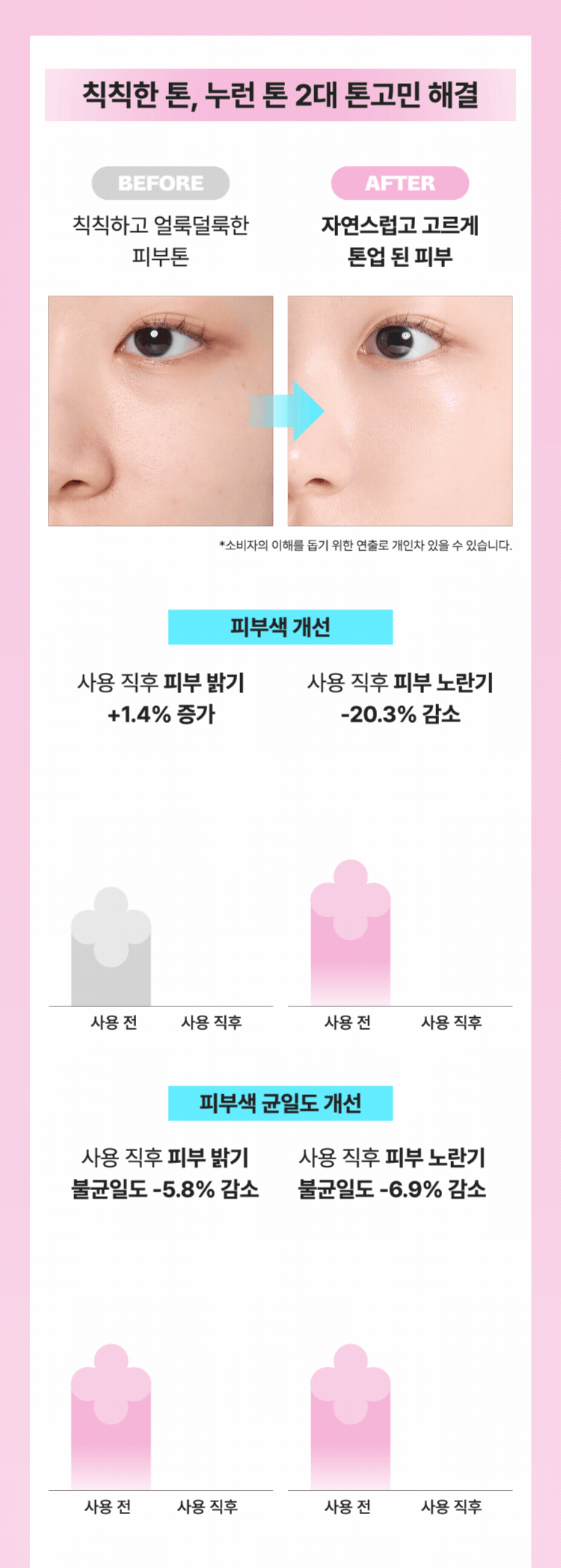 Precautions when using 1) If you have any abnormal symptoms or side effects such as red spots, swelling, or RYO swelling in the area of use due to direct sunlight when using cosmetics or after use, consult a specialist. 2) Refrain from using cosmetics on areas with wounds, etc. 3) Precautions for storage and handling A) Store out of the reach of children B) Store away from direct sunlight
