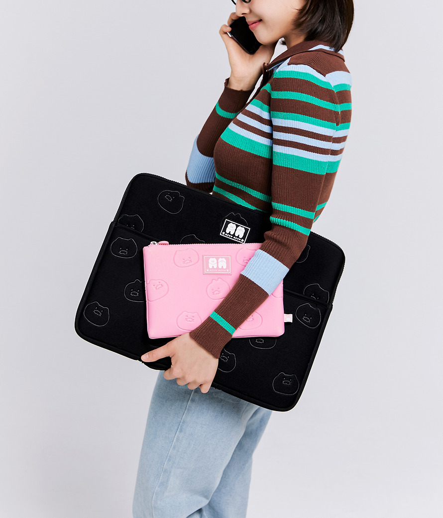 Cute and chic Chunsik is neatly spent with a laptop pouch. 🖤※ Due to the nature of neoprene material, there may be a slight odor when used for the first time. This will disappear naturally, so you can use it with confidence.