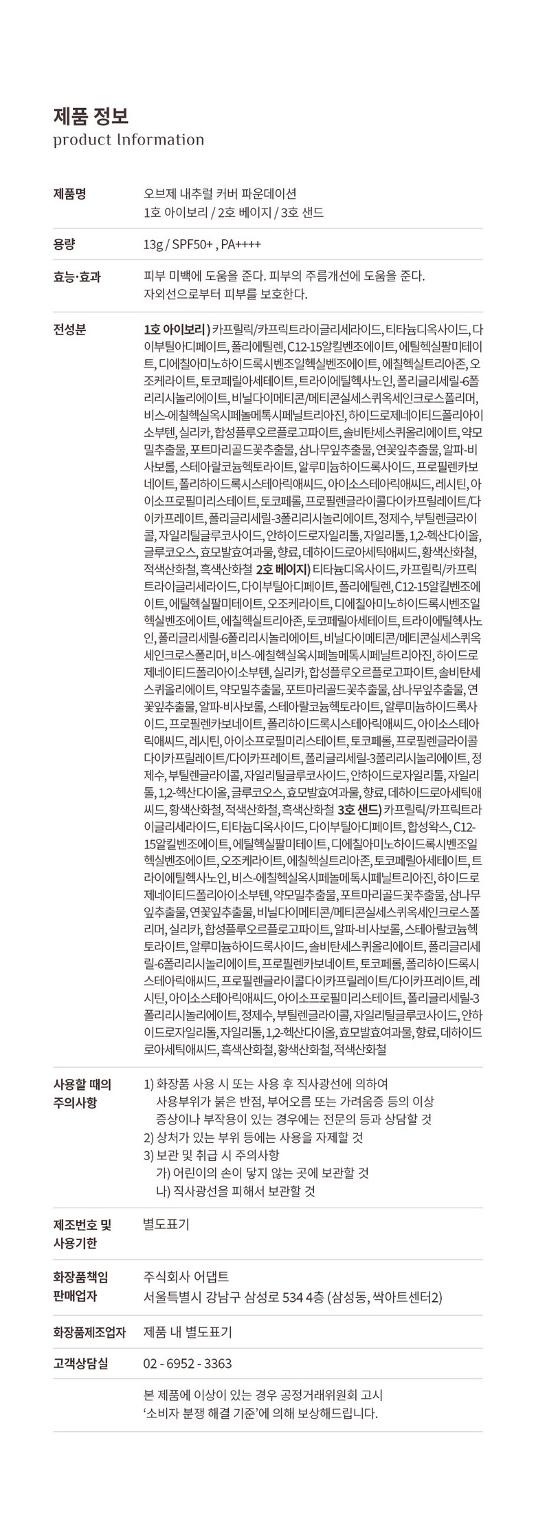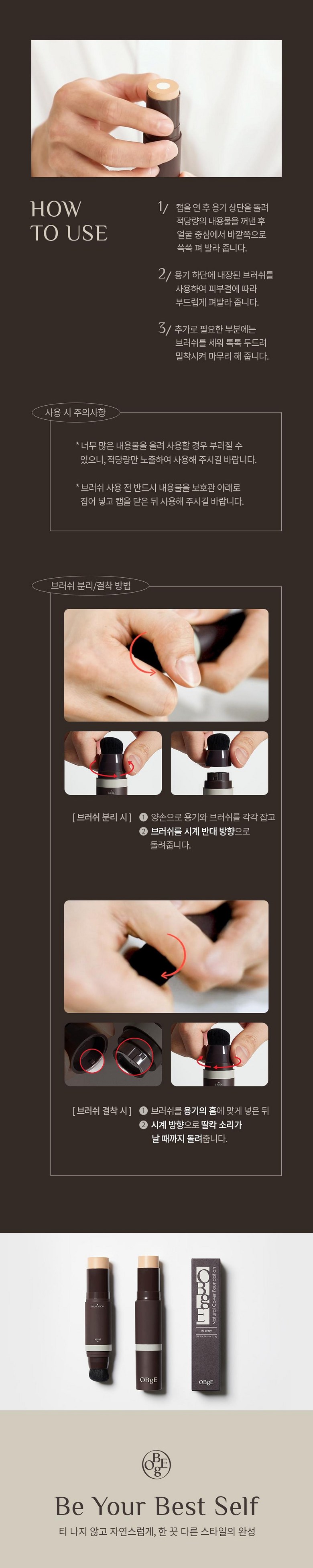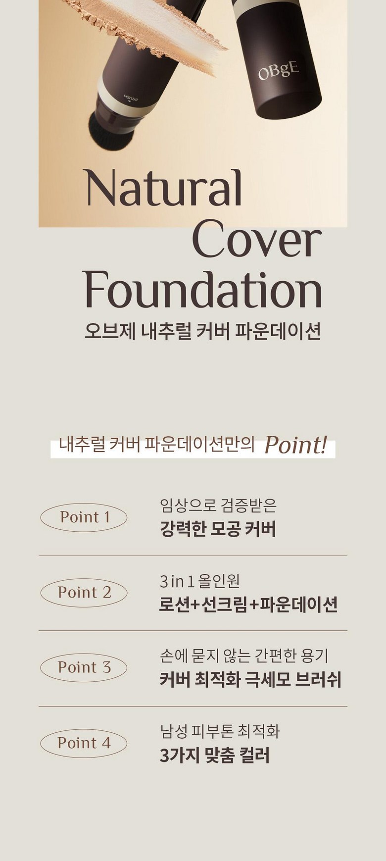 OBGE Natural Cover Foundation SPF50+PA ++++13g, No. 21 Light Beige, 1