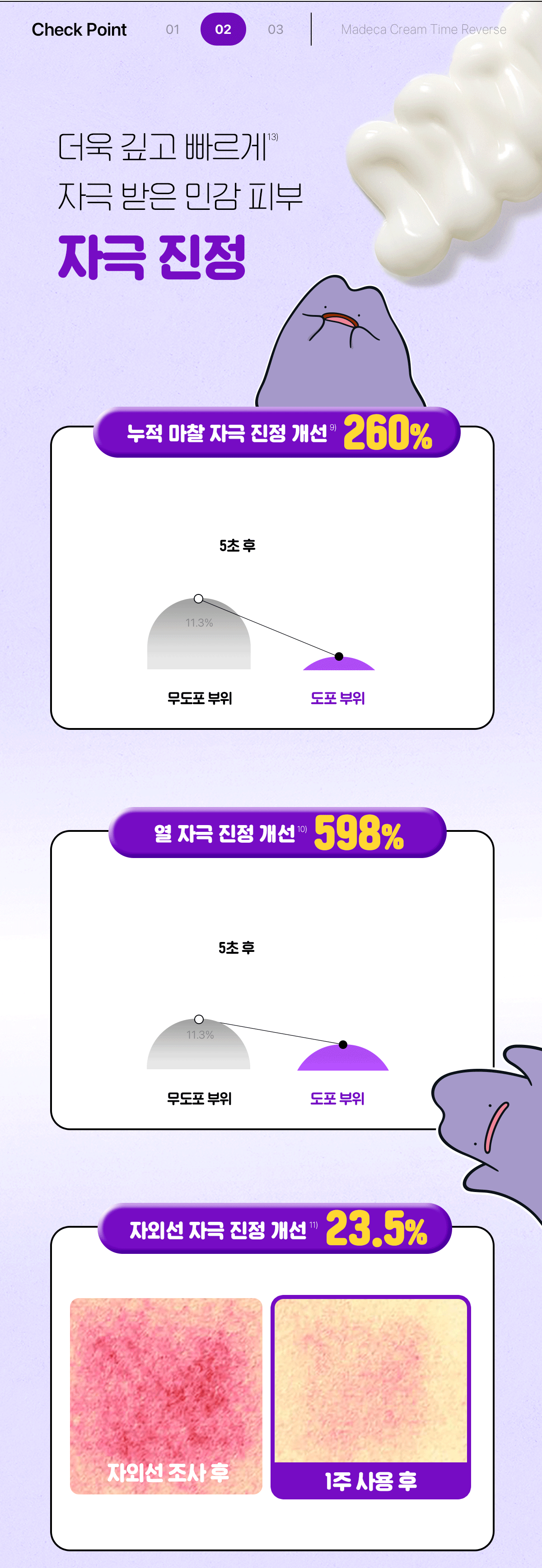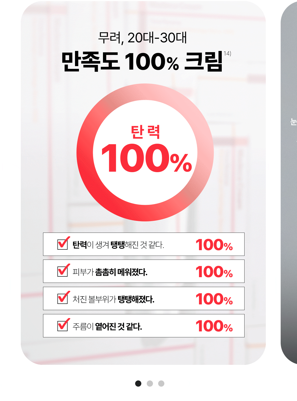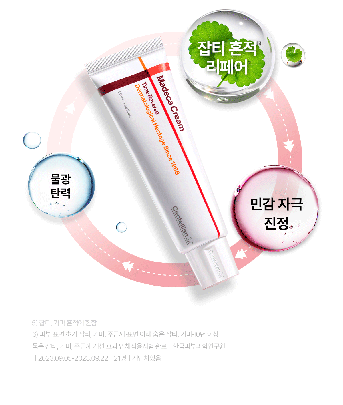 - 1) 화장품 사용 시 또는 사용 후 직사광선에 의하여 사용부위가 붉은 반점, 부어오름 또는 가려움증 등의 이상 증상이나 부작용이 있는 경우에는 전문의 등과 상담할 것.