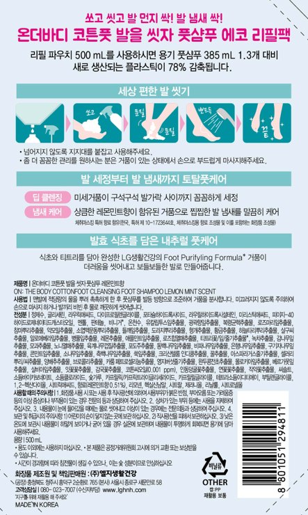 On the Body Cotton Foot Wash Foot Shampoo Lemon Mint Scented Eco Refill Pack