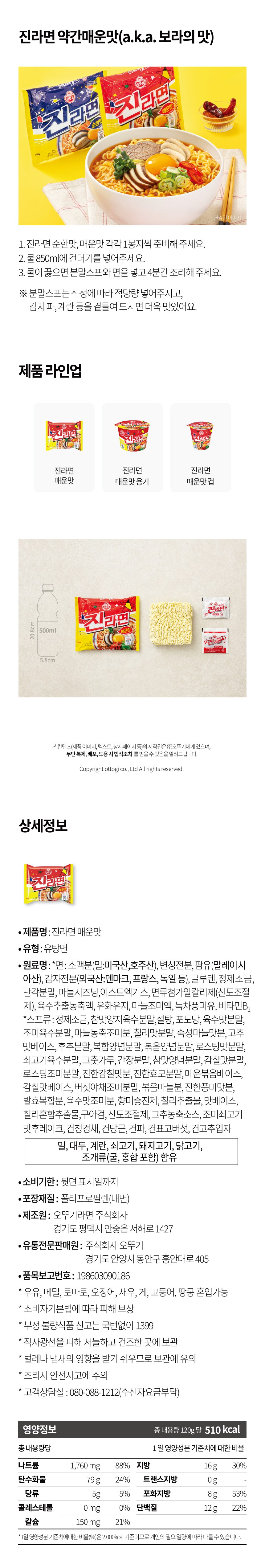 Ottogi Jin Ramen Spicy 120g, 10 pieces