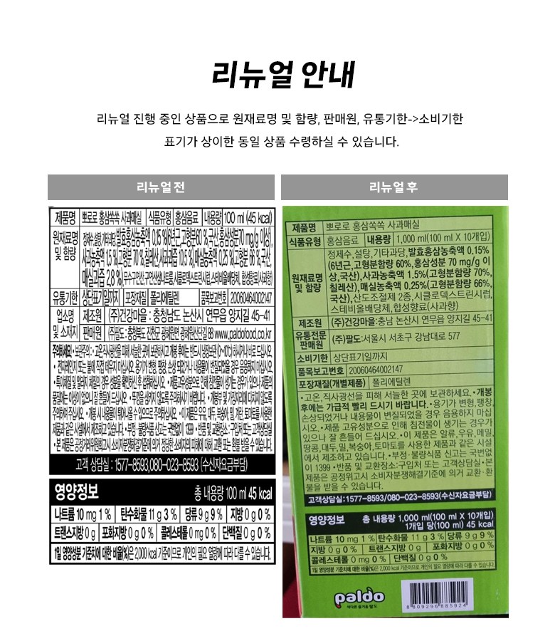Paldo Pororo Red Ginseng Plum Fruit, 100ml, 10 pcs