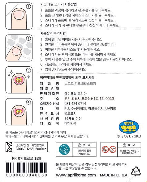Pororo Kids Nail Sticker, PR07, 1