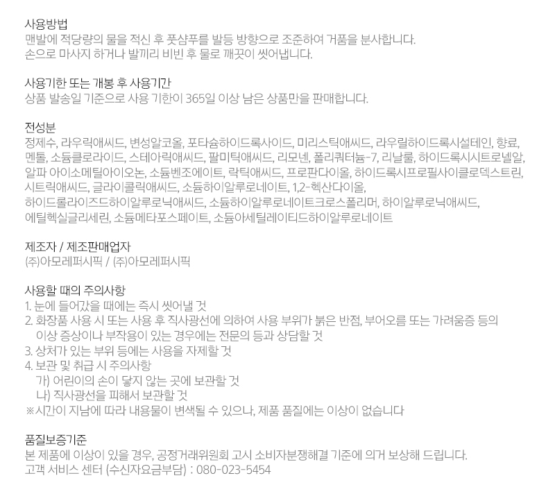 Precautions when using 1. Wash off immediately if it gets in your eyes 2. If you have any abnormal symptoms or side effects such as red spots, swelling, or RYO swelling in the area of use due to direct sunlight when using cosmetics or after use, consult a specialist 3. Refrain from using it on areas with wounds 4. Precautions for storage and handling A) Store out of reach of children B) Store away from direct sunlight *The contents may change color over time, but there is no problem with the quality of the product