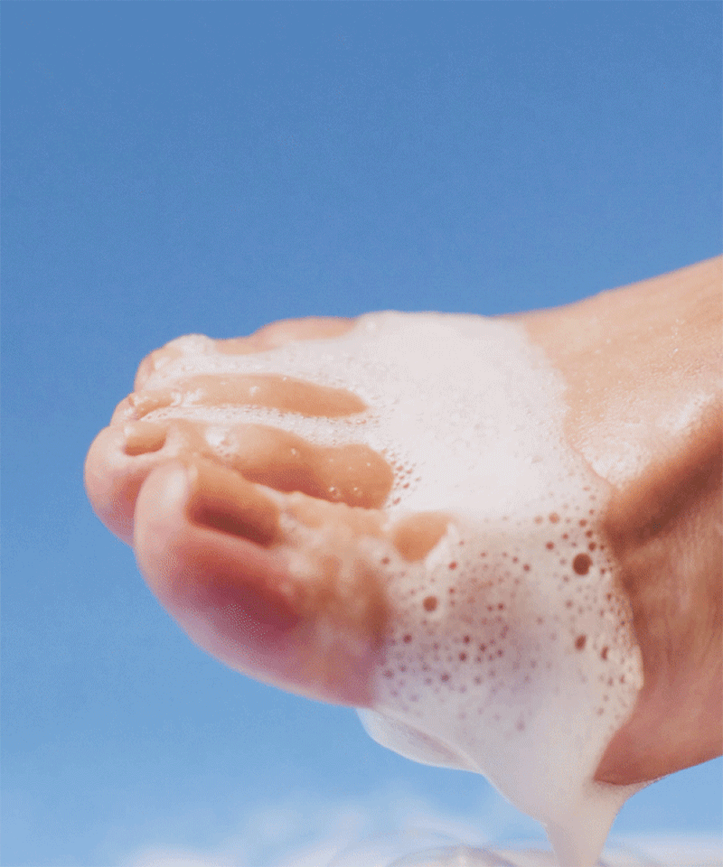 How to use Wet your bare feet with an appropriate amount of water and aim the foot shampoo in the direction of the top of your foot to spray the foam. Massage with hands or rub feet together and rinse thoroughly with water