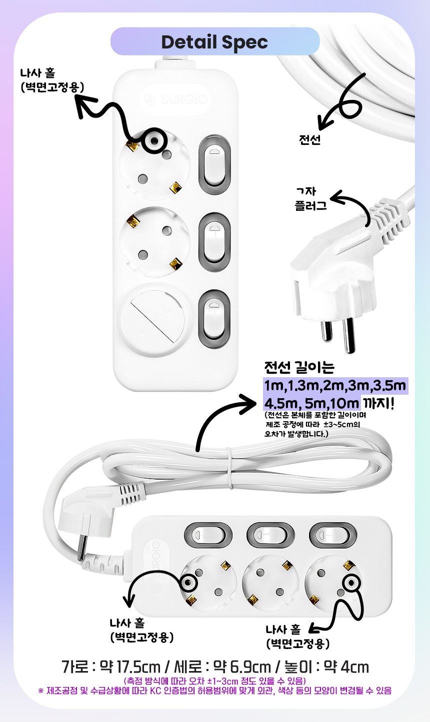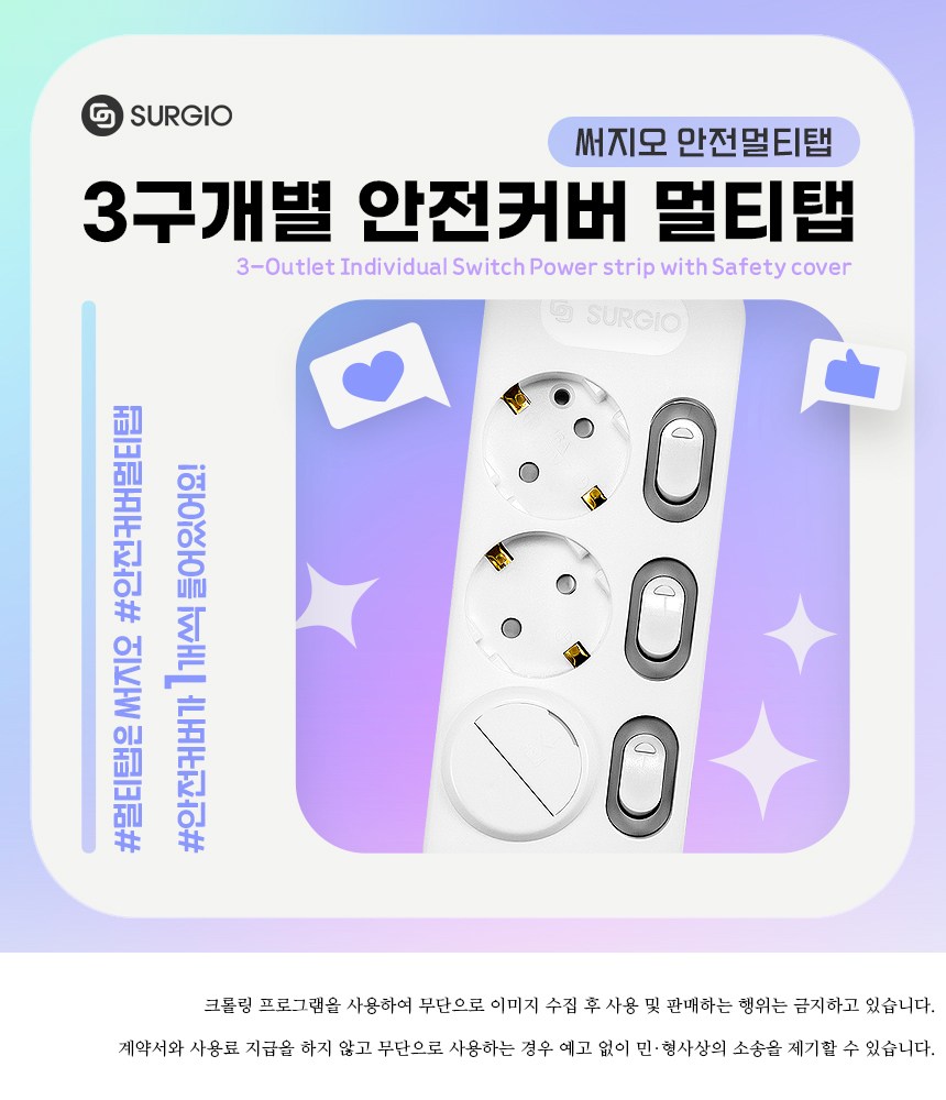 Sergio individual power strip 3 ports DH-2039-RT + safety cover random dispatch 1p