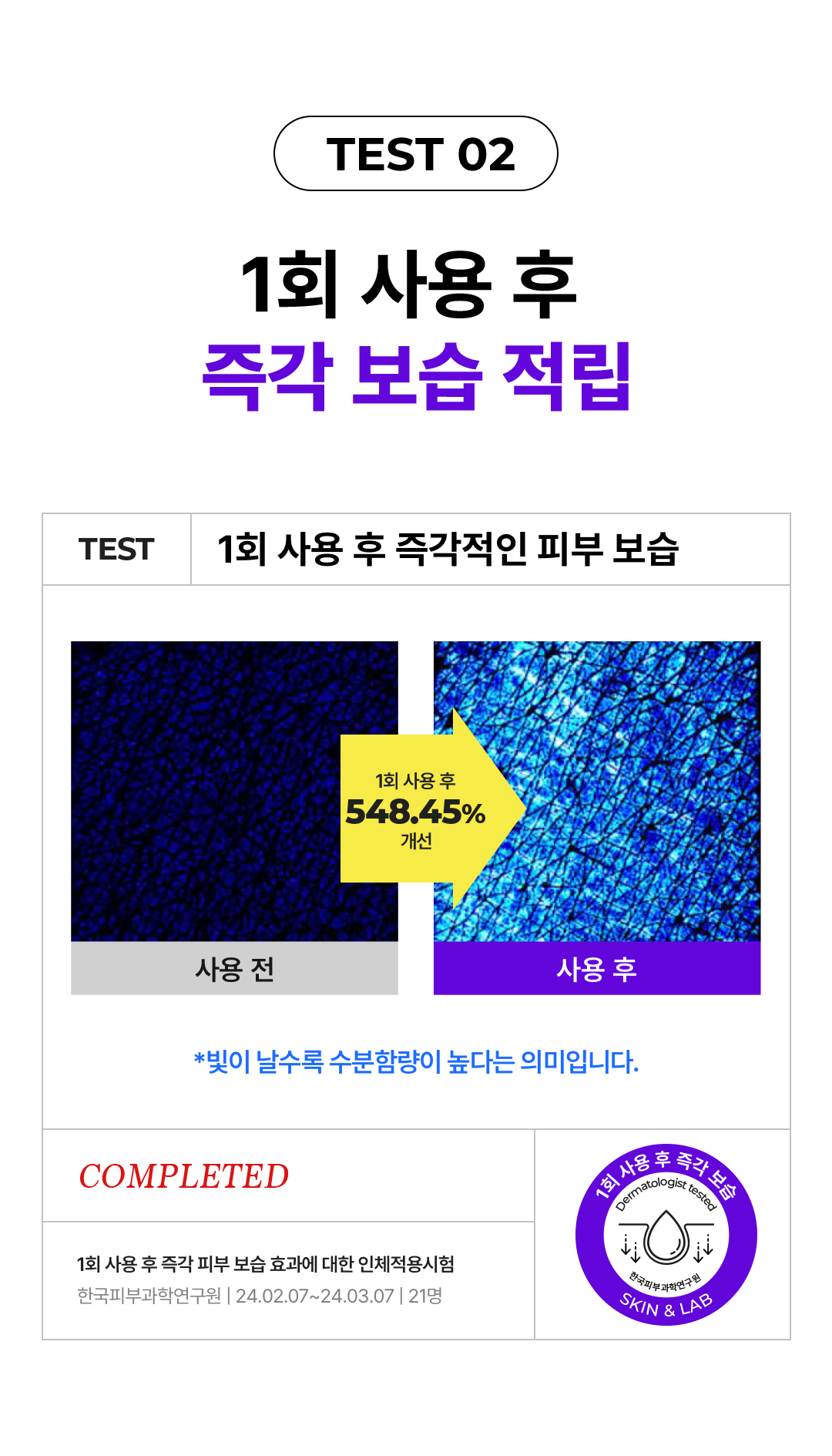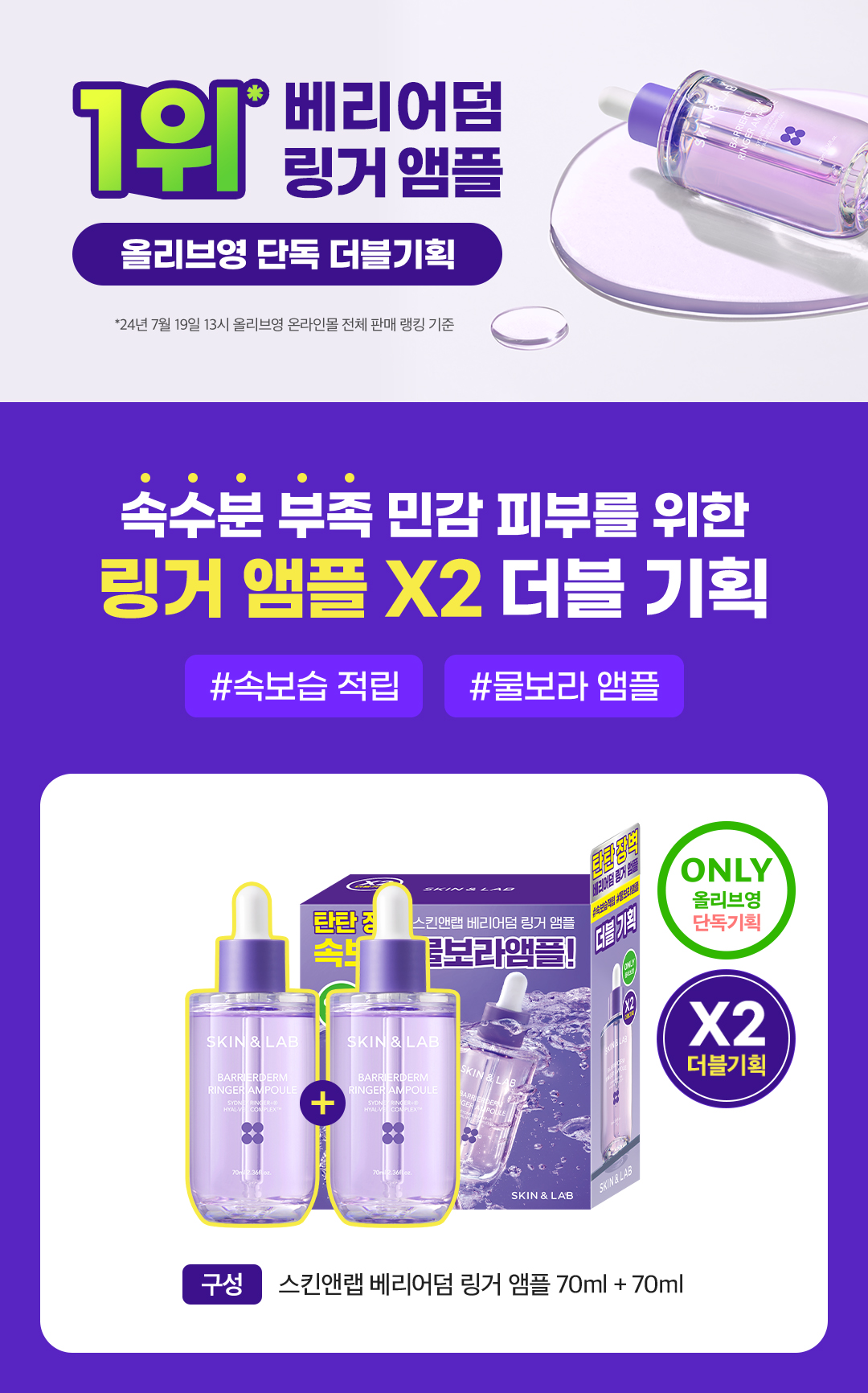 Product Information Provision Notice Table Dose or weight of the contents 70ml*2ea Main specifications For all skin types Usage date (or period of use after opening) 36 months from the date of manufacture / 12 months after opening How to use Gently apply an appropriate amount to face morning and night. Cosmetics manufacturers, cosmetics responsible vendors and customized cosmetics vendors Cosmetics manufacturer: Cosmax Co., Ltd. / Cosmetics responsible seller: Lab & Company Co., Ltd. Manufacture Republic of Korea All ingredients that must be listed in accordance with the Cosmetics Act Purified Water, Propanediol, Glycerin, 1, 2-Hexanediol, Chlorella vulgaris Extract, Sodium Hyaluronate, Lactobacillus Ferment Lysate, Panthenol, Glycosyl Trehalose, Glucose, Butylene Glycol, Hydrogenated Starch Hydrolysate, Fructooligosaccharide, Fructose, Polyquaternium-51, Glyceryl Glucoside, Saccharide Isomerate, Ethylhexylglycerin, Acrylates/C10-30 Alkyl Acrylate Crosspolymer, Allantoin, Hydroxypropyltrimonium Hyaluronate, Tromethamine, Dextrin, Sodium Phytate, Sodium Chloride, Beta-Glucan, Glyceryl Acrylate/Acrylic Acid Copolymer, Cyanocobalamin, Citric Acid, Sodium Citrate, Sodium Bicarbonate, Calcium Chloride, Potassium Croride, Tocopherol, Xanthan Gum, Gardenia Extract. Functional cosmetics food and medicine safety department examination Not applicable Precautions when using A. When using cosmetics or after using them, consult a specialist if there are any abnormal symptoms or side effects such as red spots, swelling, or BRAND 1 syndrome in the area of use due to direct sunlight. B. Refrain from using cosmetics on areas with wounds C. Precautions for storage and handling 1) Keep out of reach of children 2) Keep out of direct sunlight Quality Assurance Standards If there is a defect in this product, we will compensate you in accordance with the consumer dispute resolution standards announced by the Fair Trade Commission. Consumer Counseling Phone Number 1644-5190