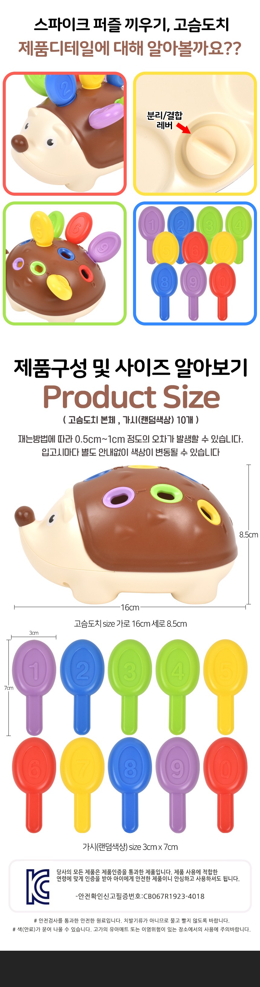 Spike puzzle hedgehog tactile toys, mixed color, 1