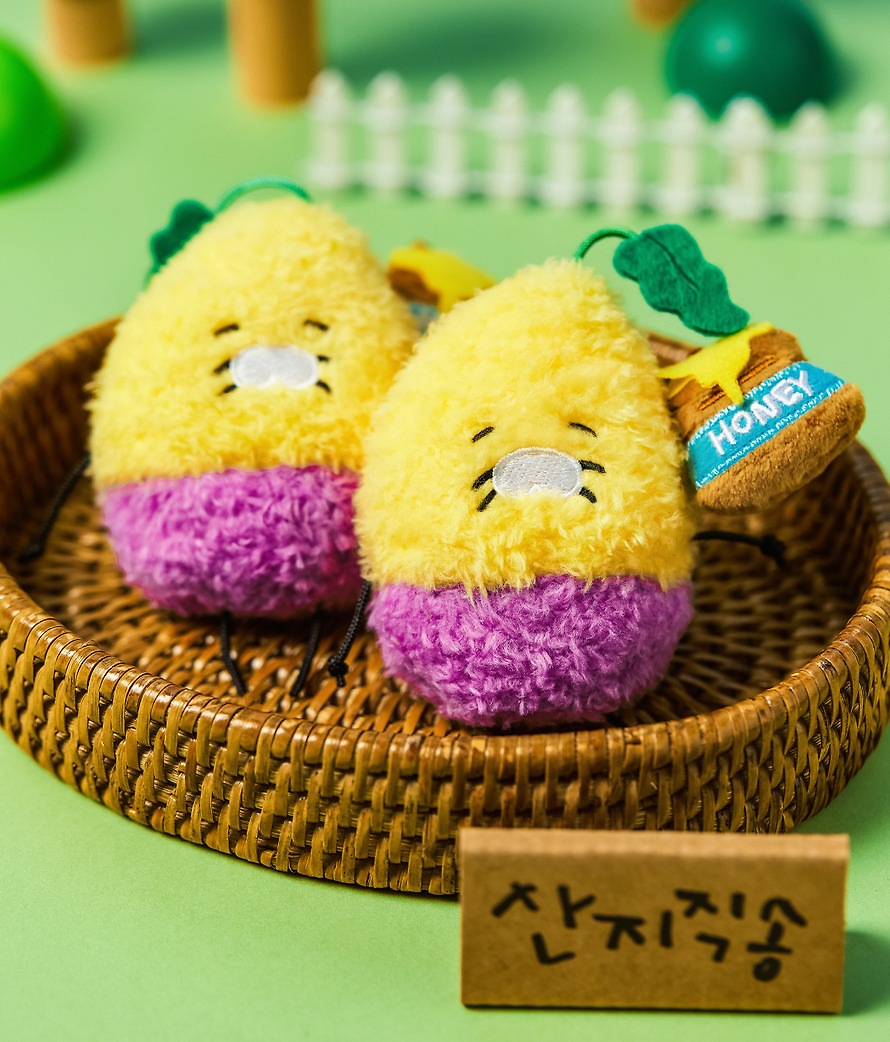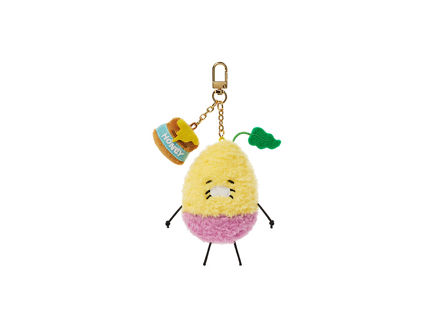 The peeled skin and languid expression and the sweet honey jar charm add to it even more cute.