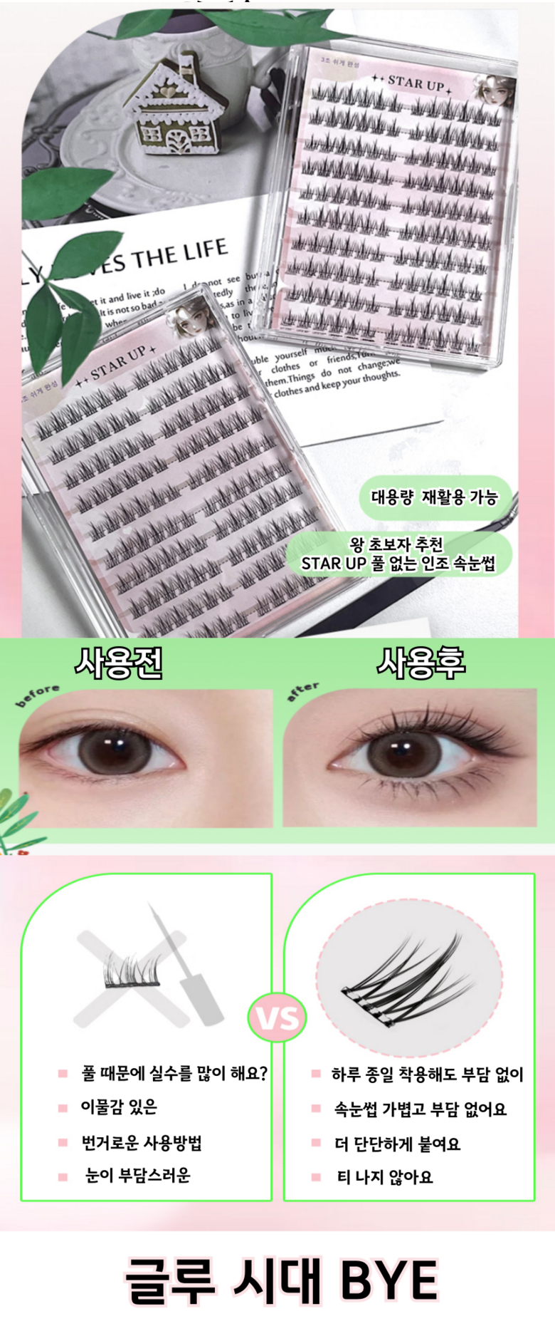STAR UP Natural Lashes Large Capacity Eyelash 120 Strands Noglue False Lashes Beginner’s Recommendation, 1 Piece, Black