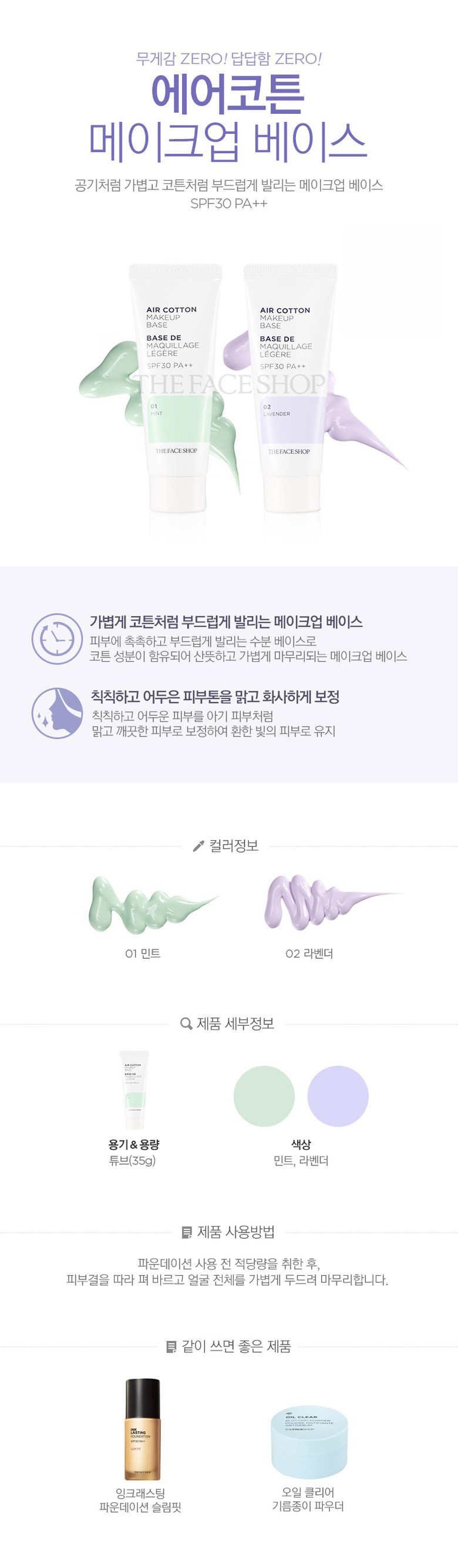 The Face Shop Air Cotton Makeup Base 35g, Lavender, 1
