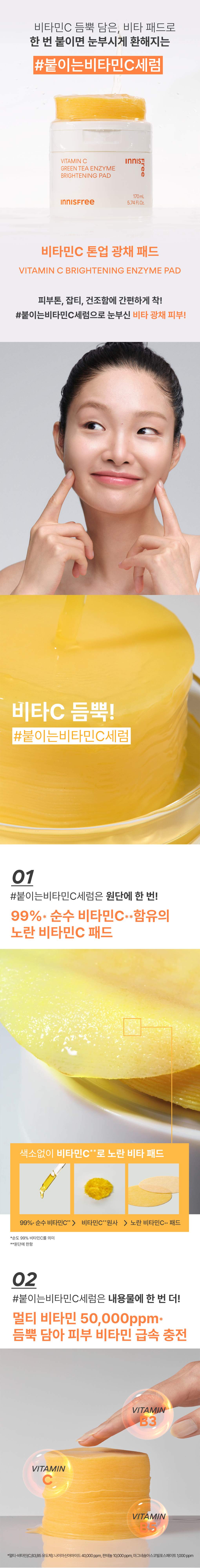 Product Information Provision Notice Table Dose or weight of the contents 60매+10매 Main specifications All Skin Usage date (or period of use after opening) 24 months from the date of manufacture / 3 months after opening (Only products with a shelf life of more than 1 year from the date of shipment are sold) How to use After 10~20 minutes of applying the product to the skin, remove the support and apply the remaining product evenly. Cosmetics manufacturers, cosmetics responsible vendors and customized cosmetics vendors CNF Co., Ltd. / innisfree Co., Ltd. Manufacture Republic of Korea All ingredients that must be listed in accordance with the Cosmetics Act Water, butylene glycol, glycerin, niacinamide (40,000 ppm), 1,2-hexanediol, panthenol, allantoin, magnesium ascorbyl phosphate (1,000 ppm), hydroxyethylcellulose, citric acid, ethylhexylglycerin, polyglyceryl-10 laurate, dipropylene glycol, dipotassium glycyrrhizinate, sodium phytate, dextrin, sodium hyaluronate, sodium citrate, gluconolactone, methyldiisopropylpropionamide, propanediol, cyclodextrin, beta-glucan, protease (10 ppm), mandarin bark extract, tocopherol, glutathione, ferulic acid, madecassoside Functional cosmetics food and medicine safety department examination Functional cosmetics examination (or report) in accordance with the Cosmetics Act Precautions when using (Precautions when using) 1. When using cosmetics or after using them, consult a specialist if you have any abnormal symptoms or side effects such as red spots, swelling, or RYO syndrome in the area of use due to direct sunlight 2. Refrain from using it on areas with wounds 3. Precautions for storage and handling A) Keep out of reach of children B) Keep out of direct sunlight 4. This product contains salicylic acid and its salts in Willow Bark extract, so should not be used on children under 3 years of age. Quality Assurance Standards If there is a problem with this product, we will compensate in accordance with the consumer dispute resolution standards announced by the Fair Trade Commission. Consumer Counseling Phone Number 080-380-0114