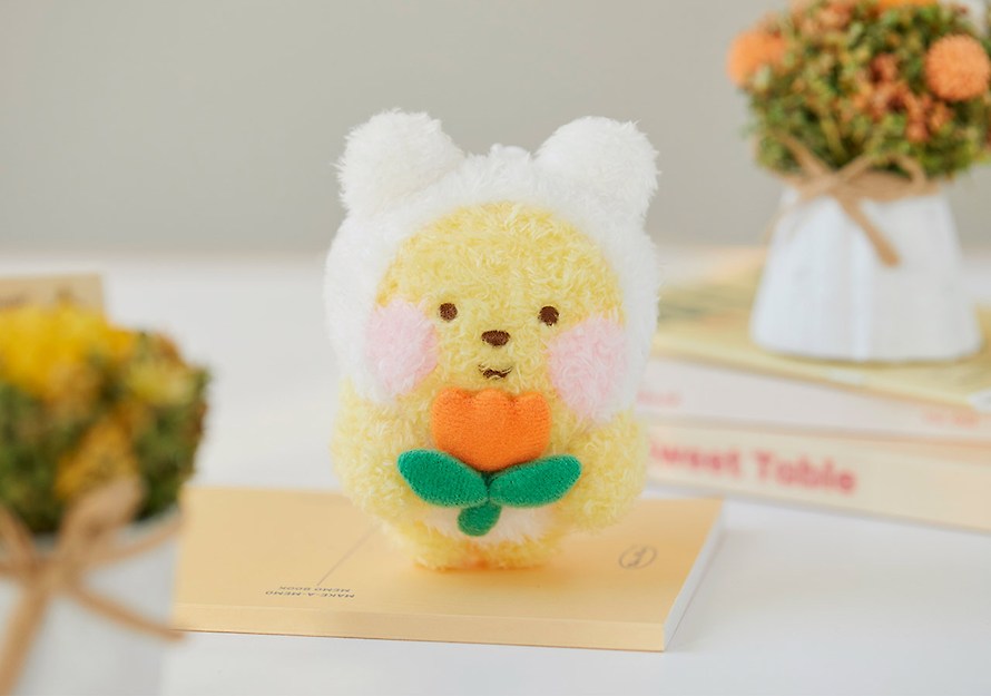 This is a Little Muji Possel keyring doll.I’m holding an orange tulip.